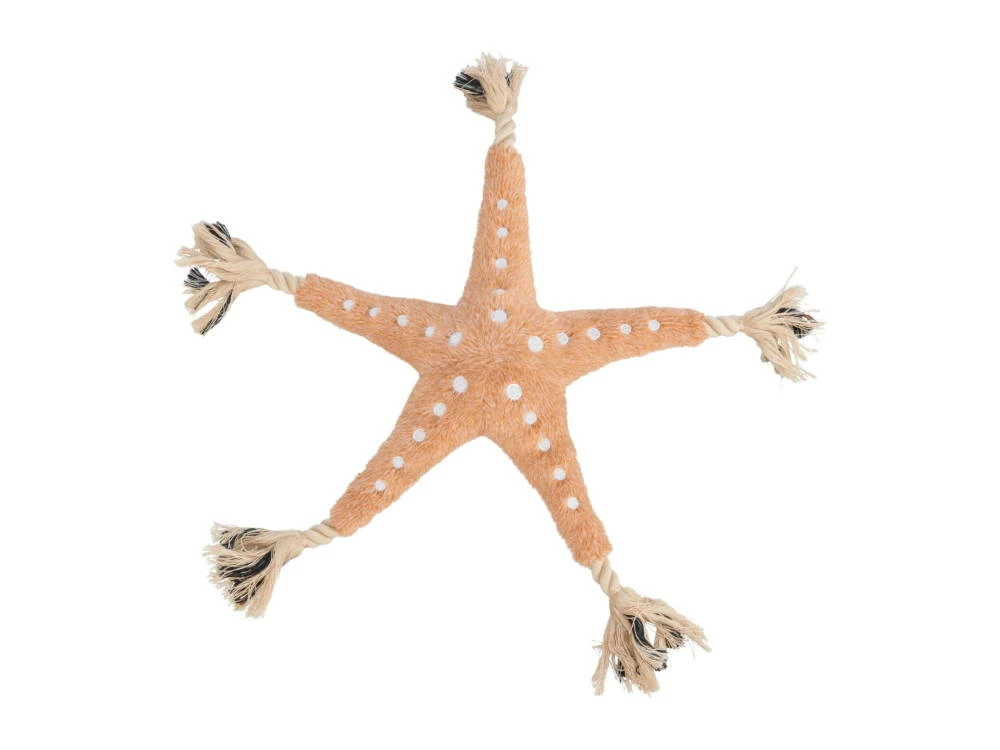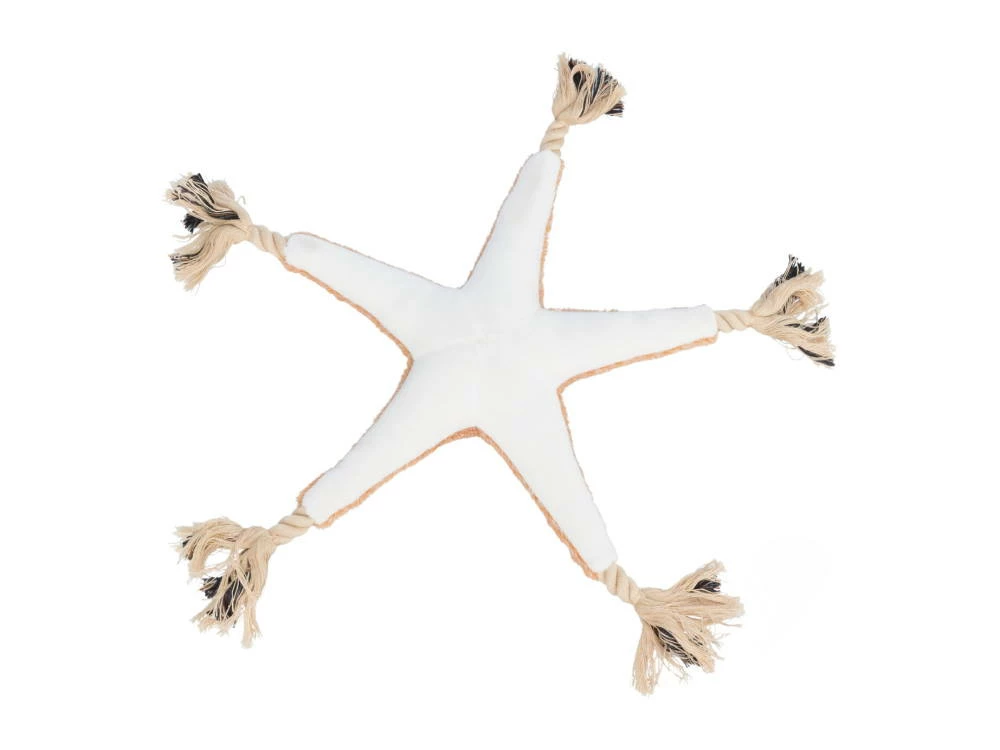 Jane ist ein großer, robuster Plüsch-Seestern, mit dem dein Hund so richtig viel Spaß haben wird. Der weiche Seestern wird durch das dicke Baumwollseil im Innern, dessen Enden aus den Armen des Seesterns herausragen (siehe Grafik), zu einem besonders strapazierfähigen Spielzeug, das auch einmal ein wildes Zerrspiel aushält. Außen mit weichem Plüsch bezogen eignet sich Jane aber auch zum kuscheln und herumtragen.