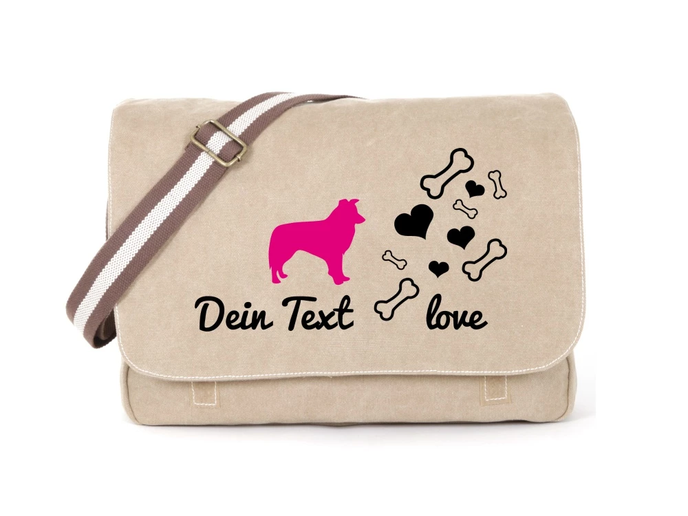Canvas Umhängetasche mit Border Collie Rassemotiv