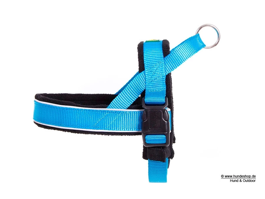 Im Brust-, Hals- und Schulterbereich großzügig mit weichem Fleece gepolstert ist das Hunter Norwegergeschirr Racing ideal nicht nur zum Gassi gehen sondern auch zum Joggen und Fahrradfahren.