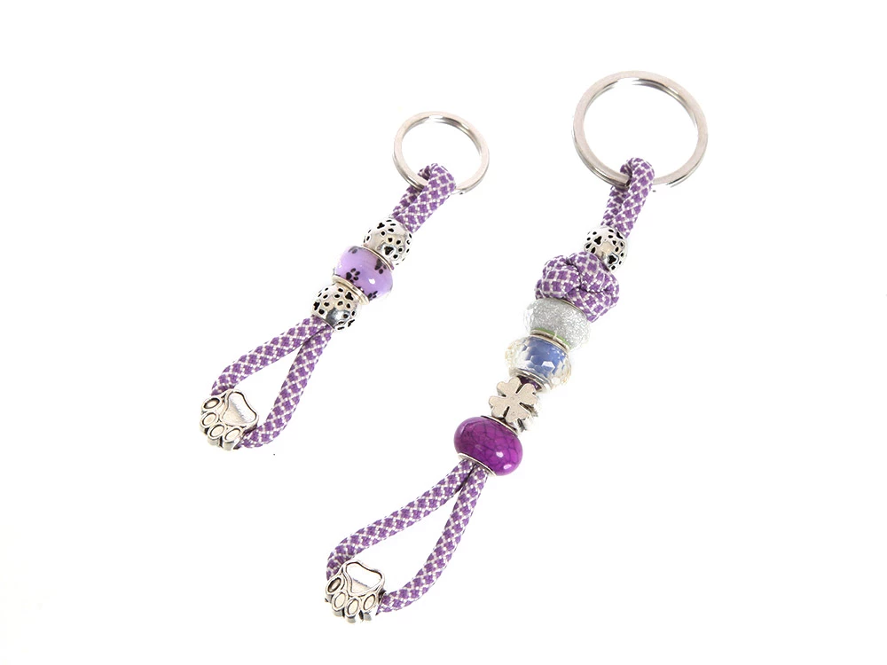 Mein fliederfarbener Schlüsselanhänger mit Schmucksteinen