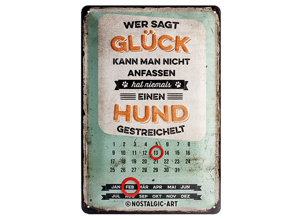 Farbenfroh und im Tetro-Look ist das Pfotenschild Glück anfassen aus hochwertigem Metall hergestellt und ein magischer Blickfang an jeder Wand.