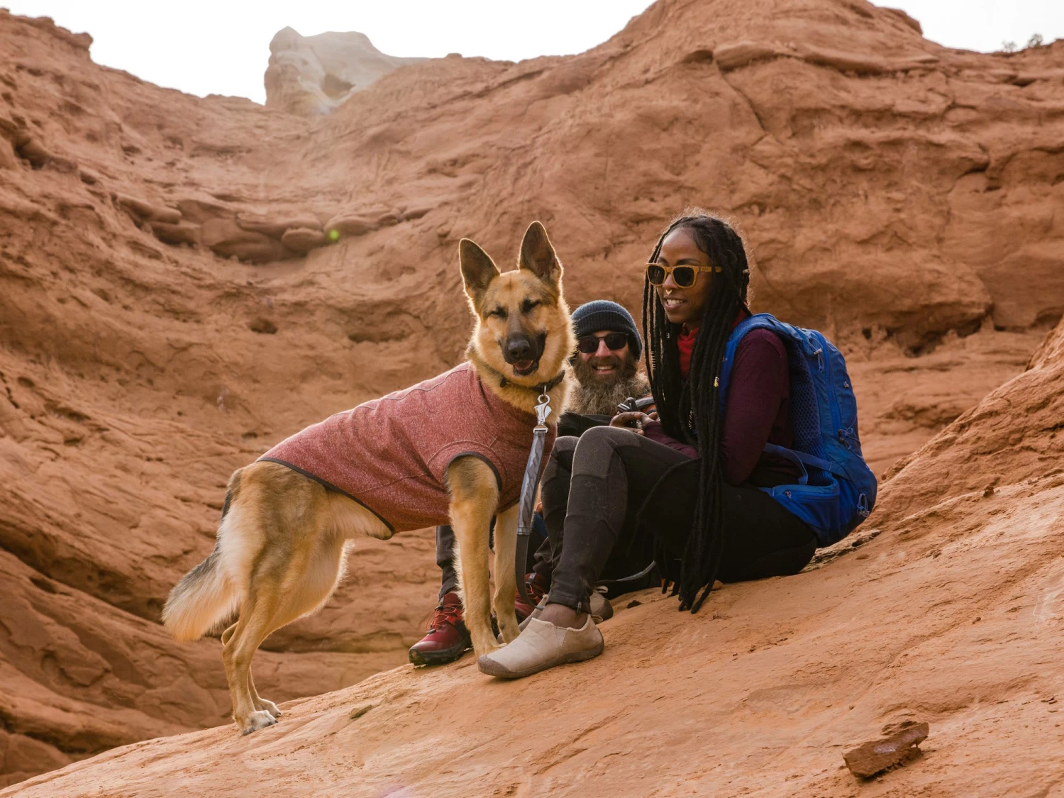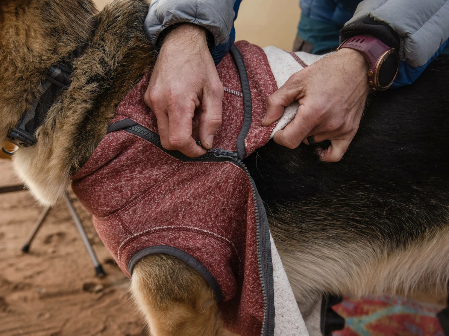 Ein wärmender Sweater für Deinen Hund aus nachhaltigem Hanf und Bio-Baumwolle. Der strapazierfähige Strickpullover kann an kalten Tagen solo oder als wärmende Schicht unter einem Regenmantel wie dem Ruffwear Sun Shower™ getragen werden.
