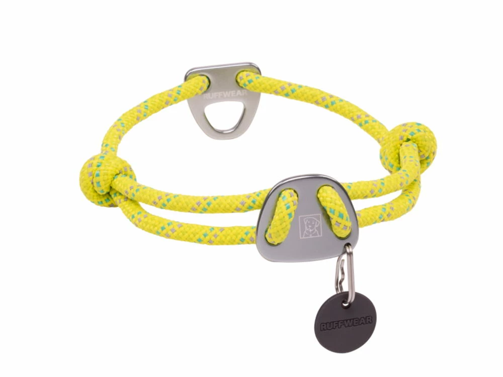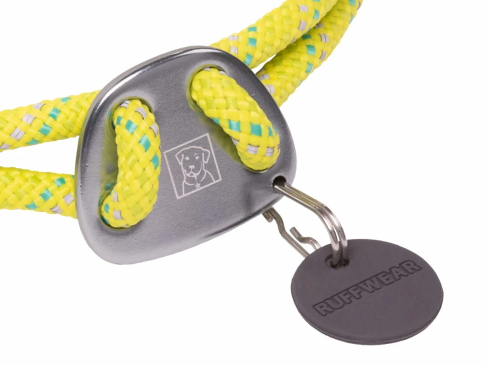Das Ruffwear Knot-a-Collar™ wird aus hochwertigem Kernmantelseil hergestellt und mit den Ruffwear-typischen Aluelemeten veredelt. Die eingflochtenen Reflektorstreifen sorgen für zusätzliche Sicherheit. Das Knot-a-Collar™: