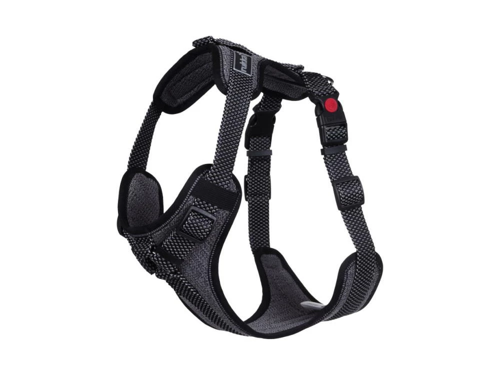 Im Hals- und Brustbereich verstellbar lässt sich dieses Geschirr perfekt an deinen Hund anpassen. Der breite gepolsterte Brustbereich verteilt den Druck optimal und sorgt dafür, dass das Geschirr deinem Hund volle Bewegungsfreiheit bietet.