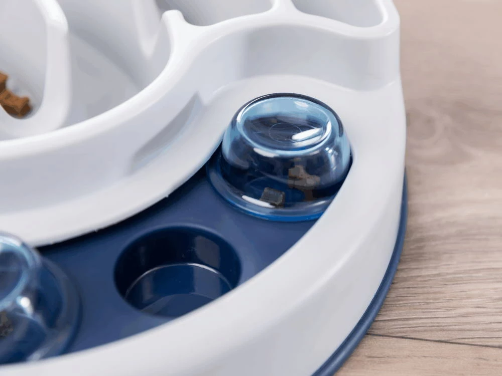 Gleichzeitig kannst Du das Slide & Feed Strategiespiel auch als Anti-Schlingnapf nutzen und deinem Hund sein Trockenfutter darüber geben.