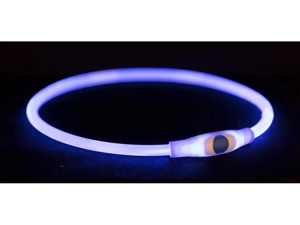 Der Flash Leuchtring aus ungiftigem TPU-Kunststoff wird einfach über ein mitgeliefertes Kabel aufgeladen. Per Knopfdruck kannst Du das Licht bei Bedarf auf Blinklicht, Dauerlicht oder ausschalten.