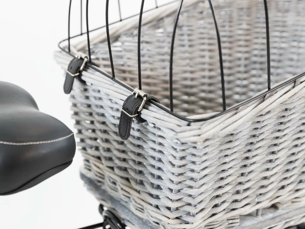 Mit diesem schönen Weidenkorb kann dich dein kleiner Hund überall hin begleiten, wenn du mit dem Fahrrad unterwegs bist. Eine stabile Unterkonstruktion sorgt dafür, dass der Korb sicher auf dem Gepäckträger befestigt wird.