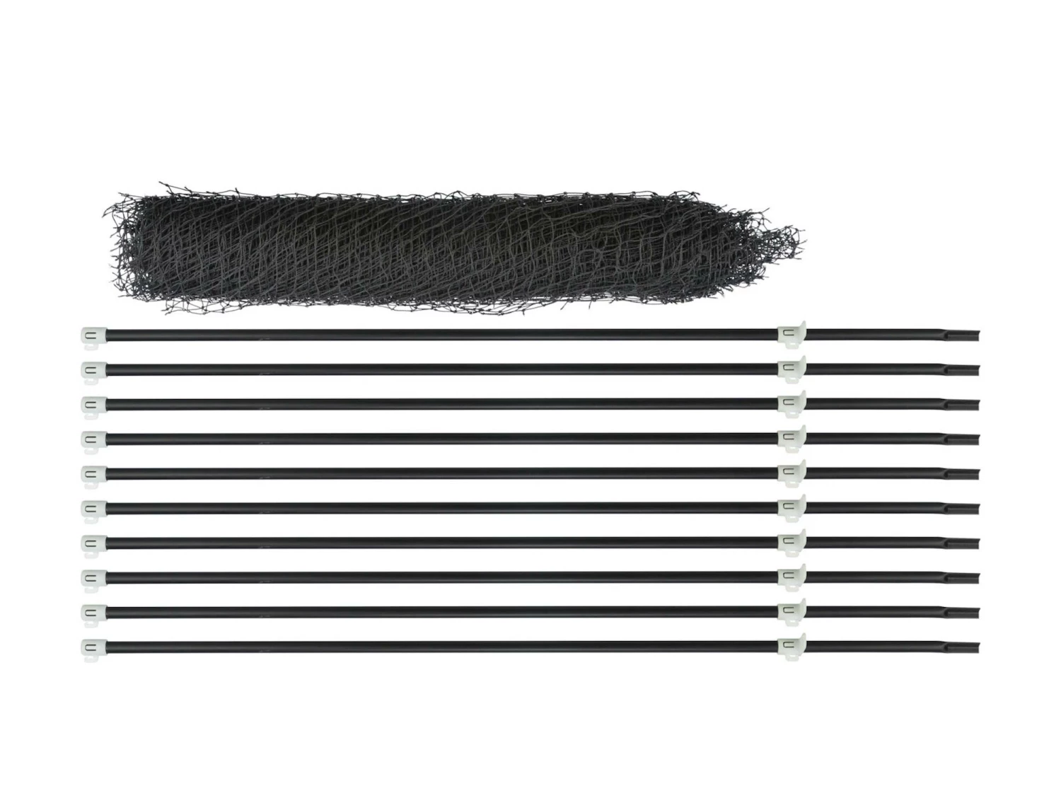 - Lieferumfang: 10 Stangen mit Halteclips, 1 Netz
