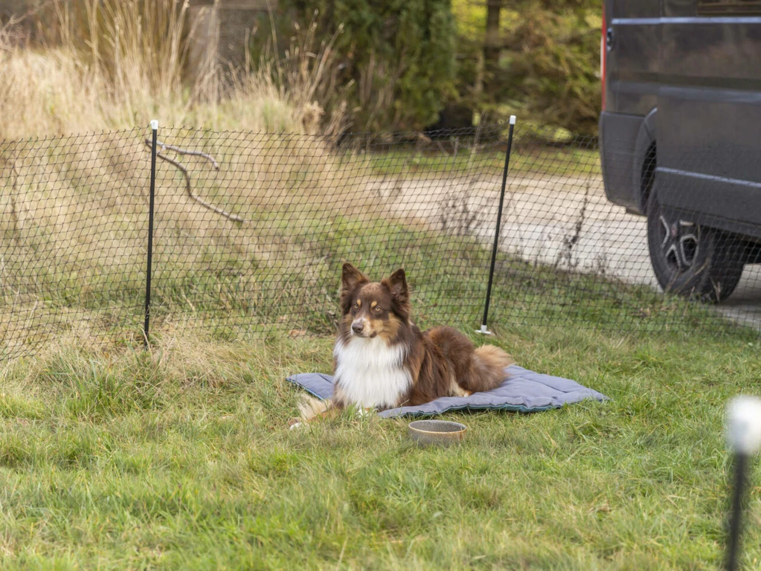 Hinweis: Der mobile Hundezaun ist nicht ausbruchsicher. Lass Deinen Hund nie unbeobachtet in dem mobilen Hundezaun.